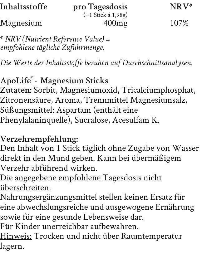 ApoLife Magnesium Sticks Orange Zitrone 40Stk.