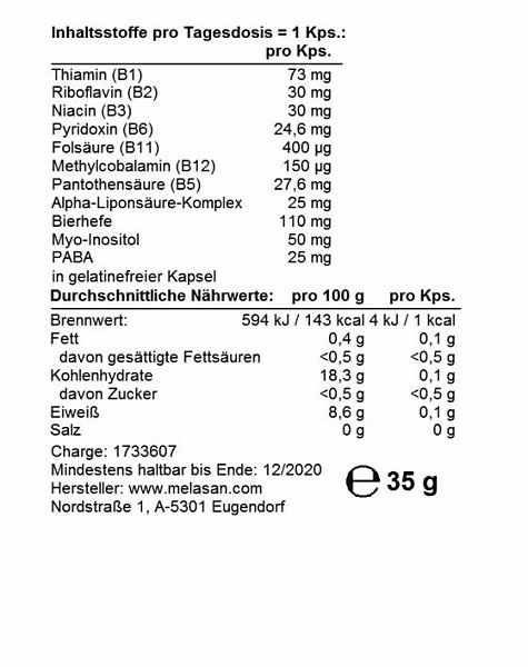 Die empfohlene Tagesmenge nicht überschreiten. Nahrungsergänzungsmittel sind kein Ersatz für eine abwechslungsreiche Ernährung. Nahrungsergänzungsmittel außerhalb der Reichweite von kleinen Kindern lagern.