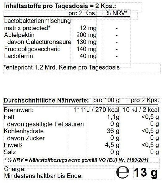Lactobakterienpulver, 9 Stämme, doppelt gecoatet, 600 Mio. vermehrungsfähige Keime