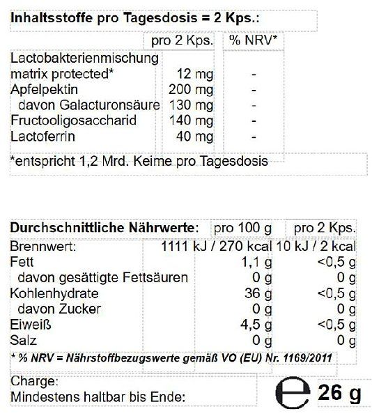 Lactobakterienpulver, 9 Stämme, doppelt gecoatet, 600 Mio. vermehrungsfähige Keime