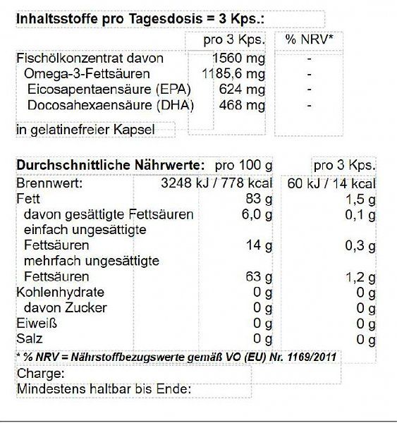 davon Omega 3 Fettsäuren 1185,6mg
