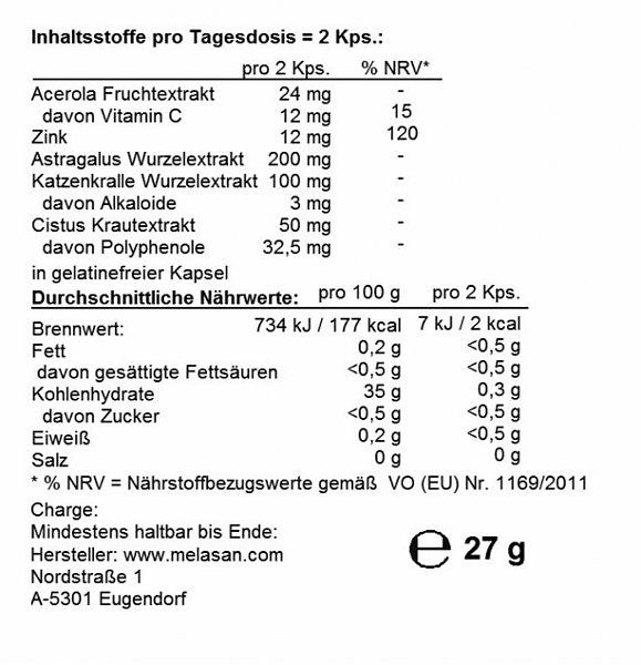 Die empfohlene Tagesmenge nicht überschreiten. Nahrungsergänzungsmittel sind kein Ersatz für eine abwechslungsreiche Ernährung. Nahrungsergänzungsmittel außerhalb der Reichweite von kleinen Kindern lagern.