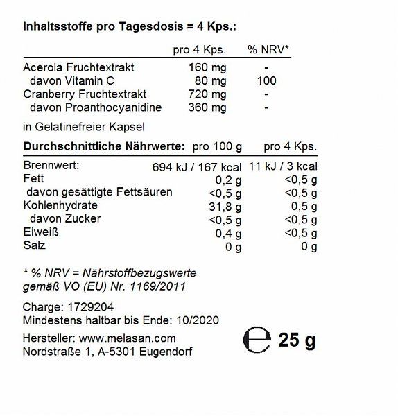 Dieses Produkt enthält Cranberryextrakt.