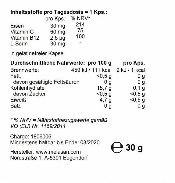 Die empfohlene Tagesmenge nicht überschreiten. Nahrungsergänzungsmittel sind kein Ersatz für eine abwechslungsreiche Ernährung. Nahrungsergänzungsmittel außerhalb der Reichweite von kleinen Kindern lagern.