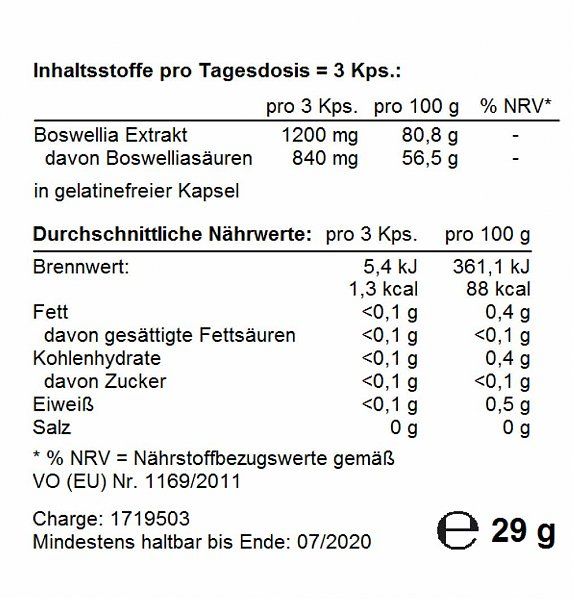Das Harz entsteht aus dem Milchsaft, der aus der Rinde des indischen Weihrauch-baumes gewonnen wird. Hauptbestandteil sind verschiedene Boswelliasäuren, die verantwortlich für die entzündungshemmende Wirkung des Weihrauchs sind.