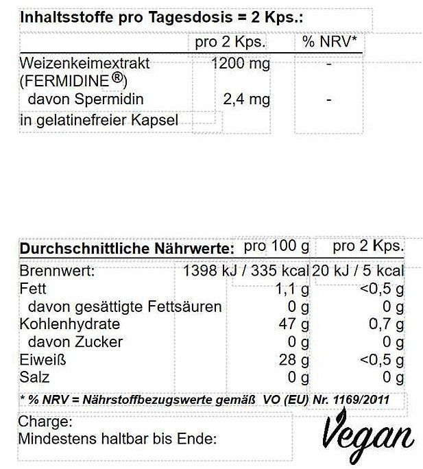 Weizenkeimextrakt (Fermidine) 600 mg entspr. 1,2 mg Spermidin